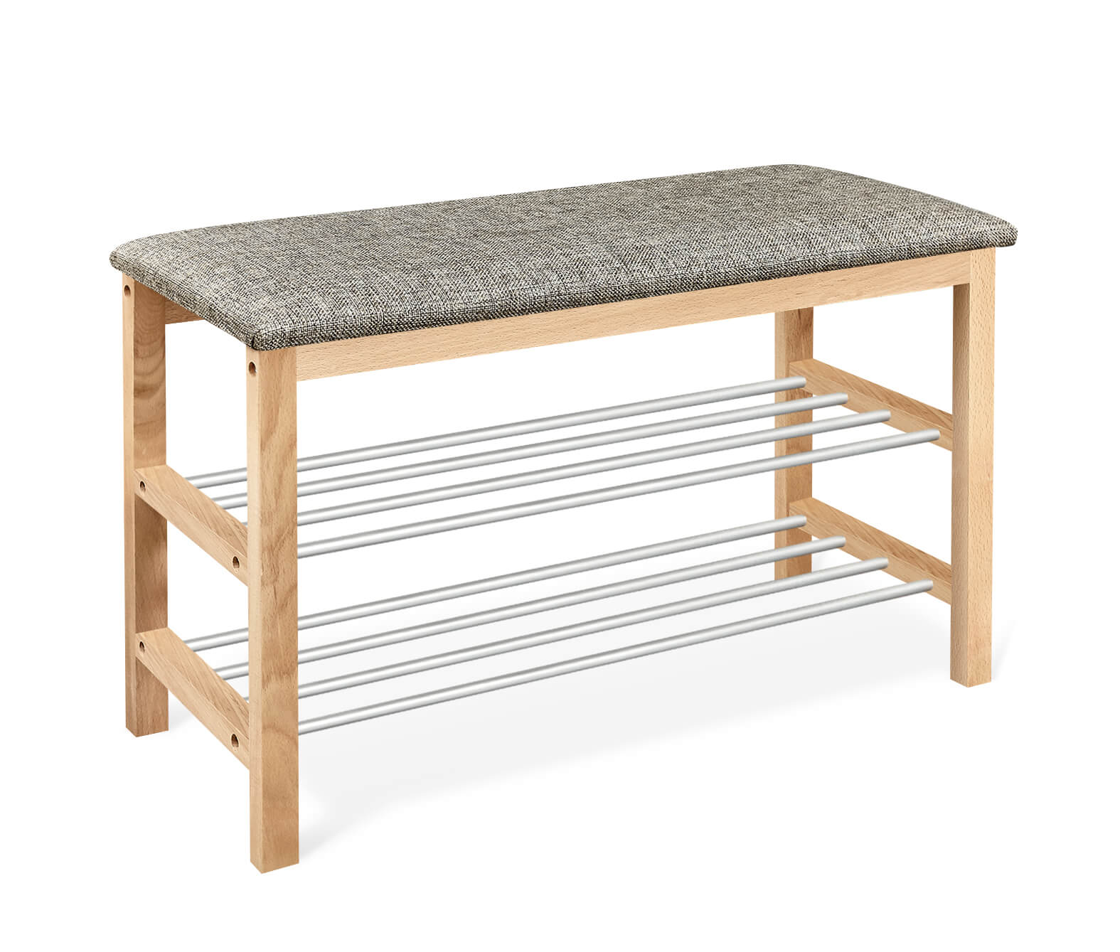 Уютная банкетка с мягким сидением и полками для размещения обуви и тапочек.