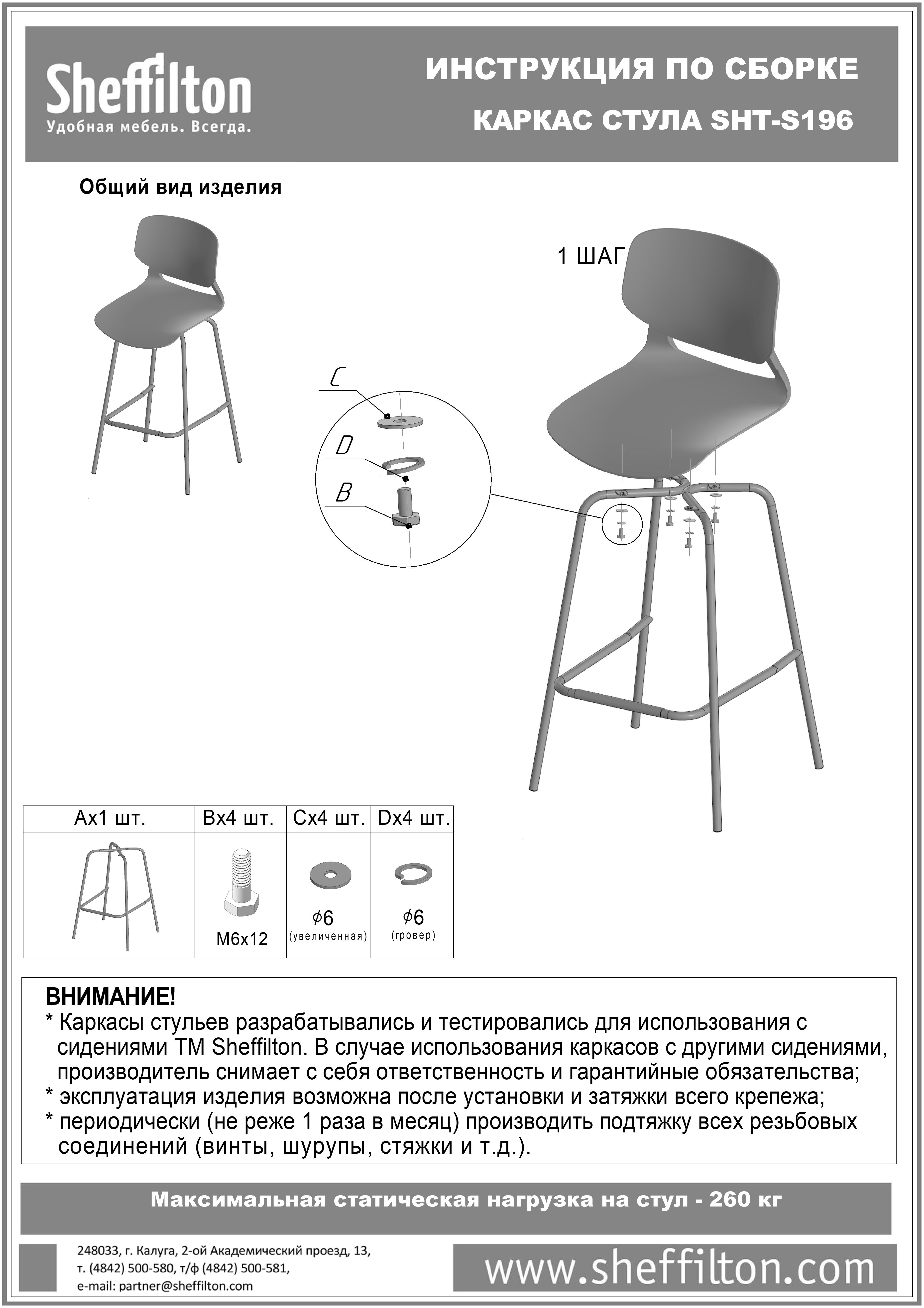 Внимание! Каркасы стульев разрабатывались и тестировались для использования с сидениями ТМ Sheffilton. В случае использования каркасов с другими сидениями производитель снимает с себя ответственность и гарантийные обязательства.