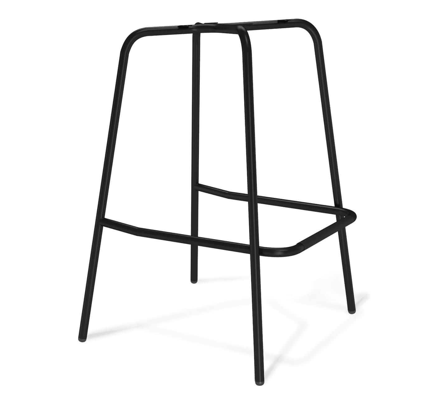Барный каркас выполнен из металлической трубы диаметром 20 мм и толщиной 1,5 мм. Сиденье крепится к каркасу с помощью приваренных фланцев, что обеспечивает дополнительную прочность и не нарушает целостность металлической конструкции. Поверхность каркаса покрыта порошковой краской, устойчивой к механическому воздействию.