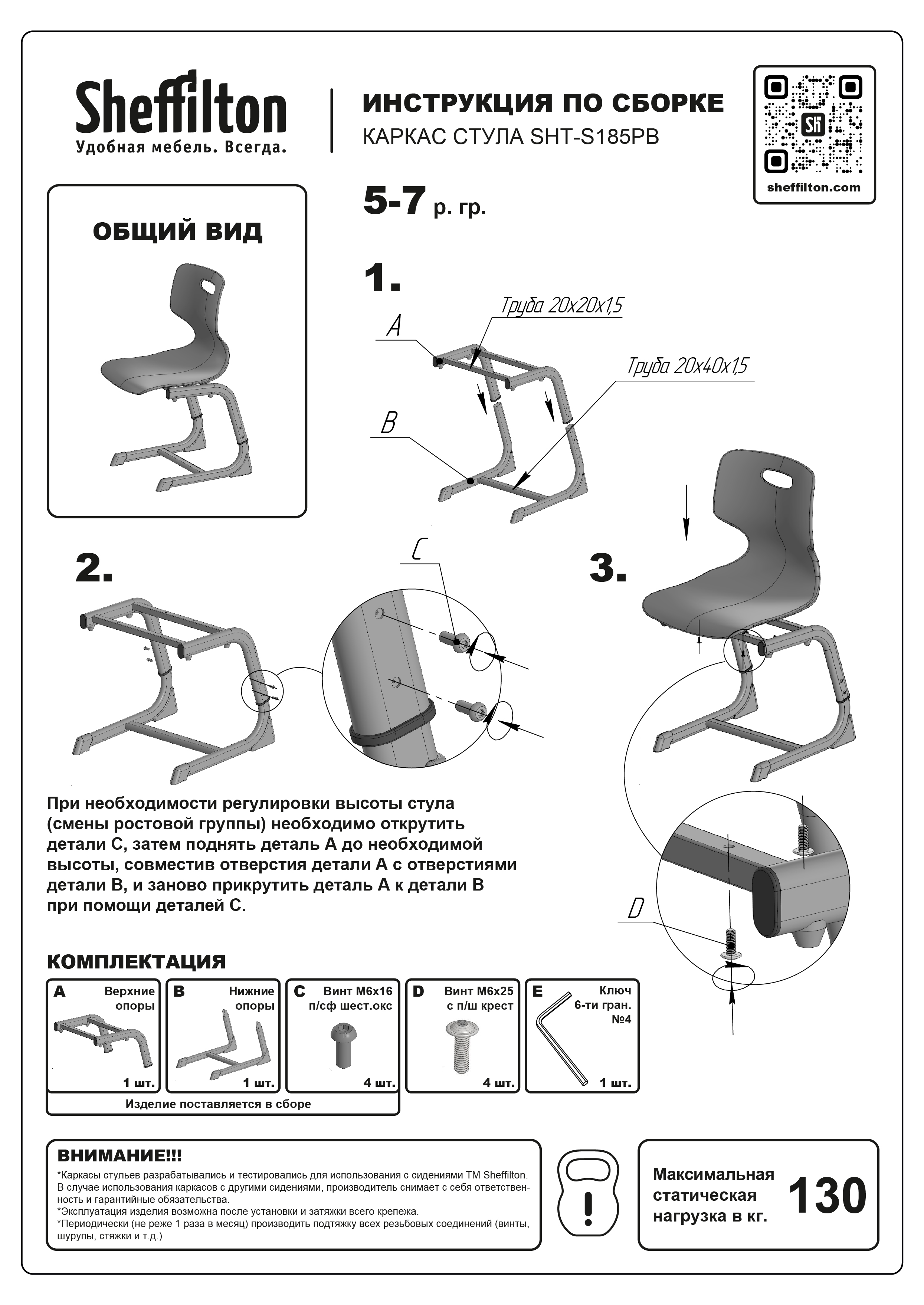 Внимание!!! Каркасы стульев разрабатывались и тестировались для использования с сидениями ТМ Sheffilton. В случае использования каркасов с другими сиденmями, производитель снимает с себя ответственность и гарантийные обязательства.
