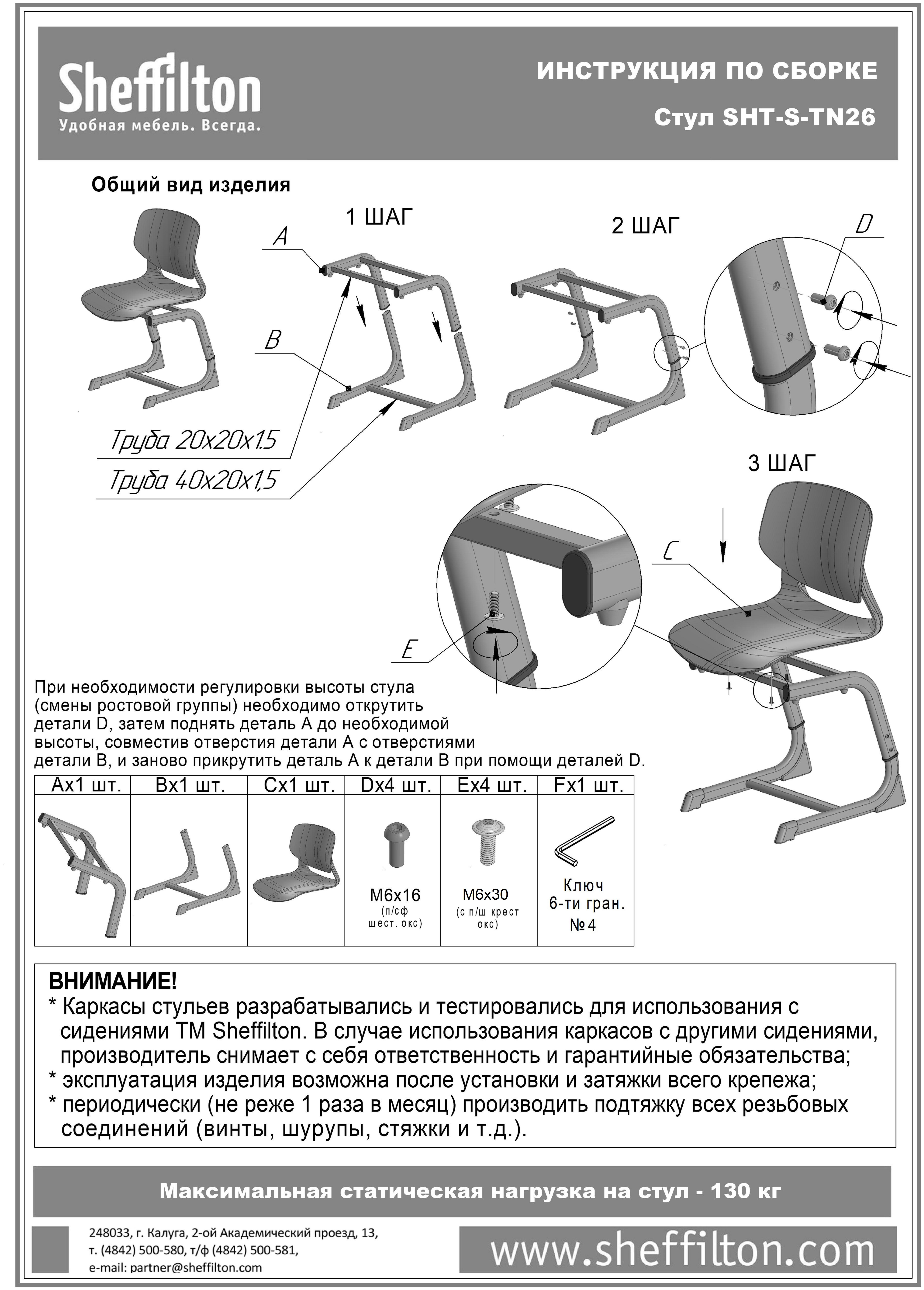 Нагрузка на стул – до 130 кг.