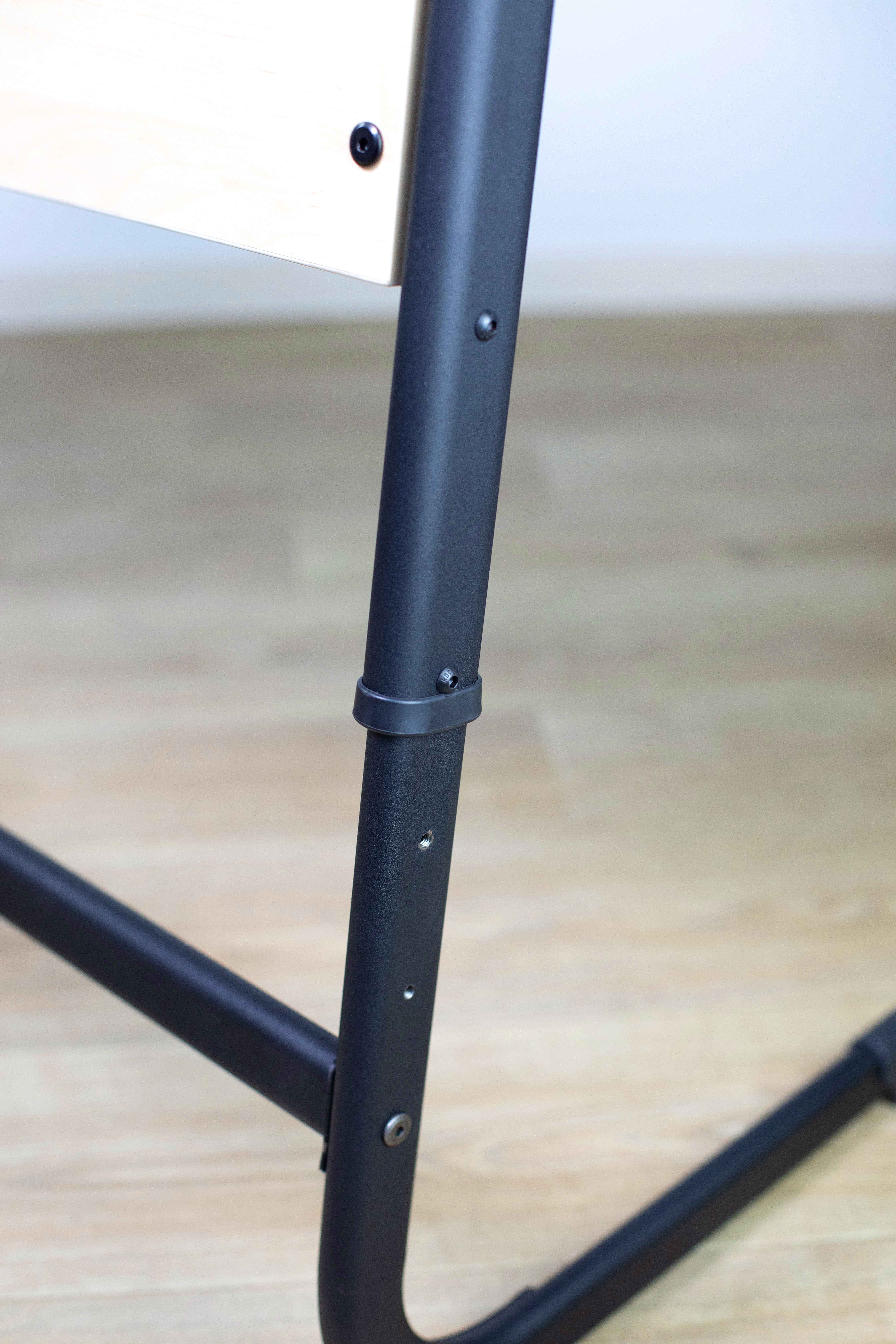 Надежный металлический каркас стола покрыт порошковой краской, устойчивой к механическому воздействию, что гарантирует долговечность использования.
