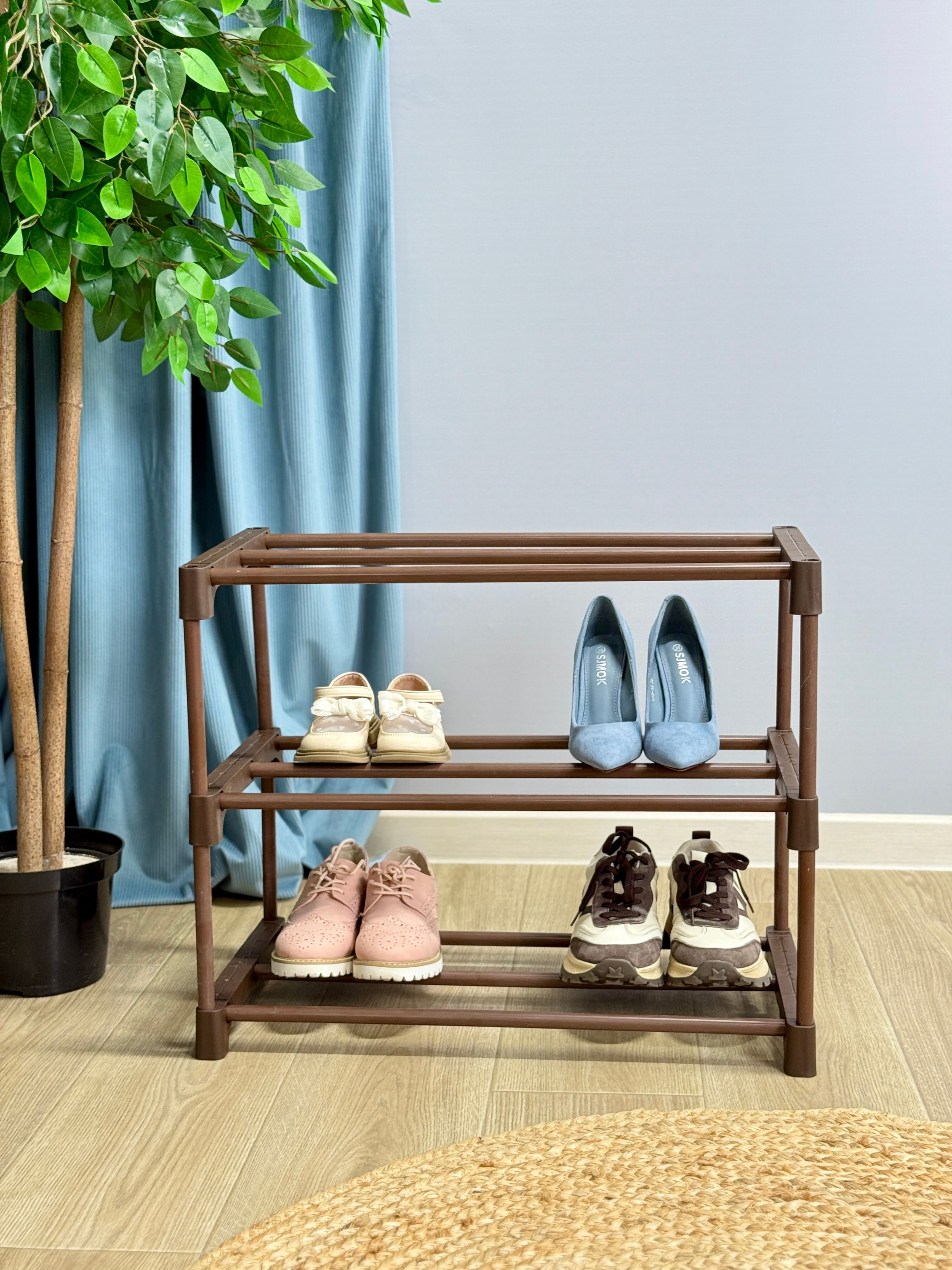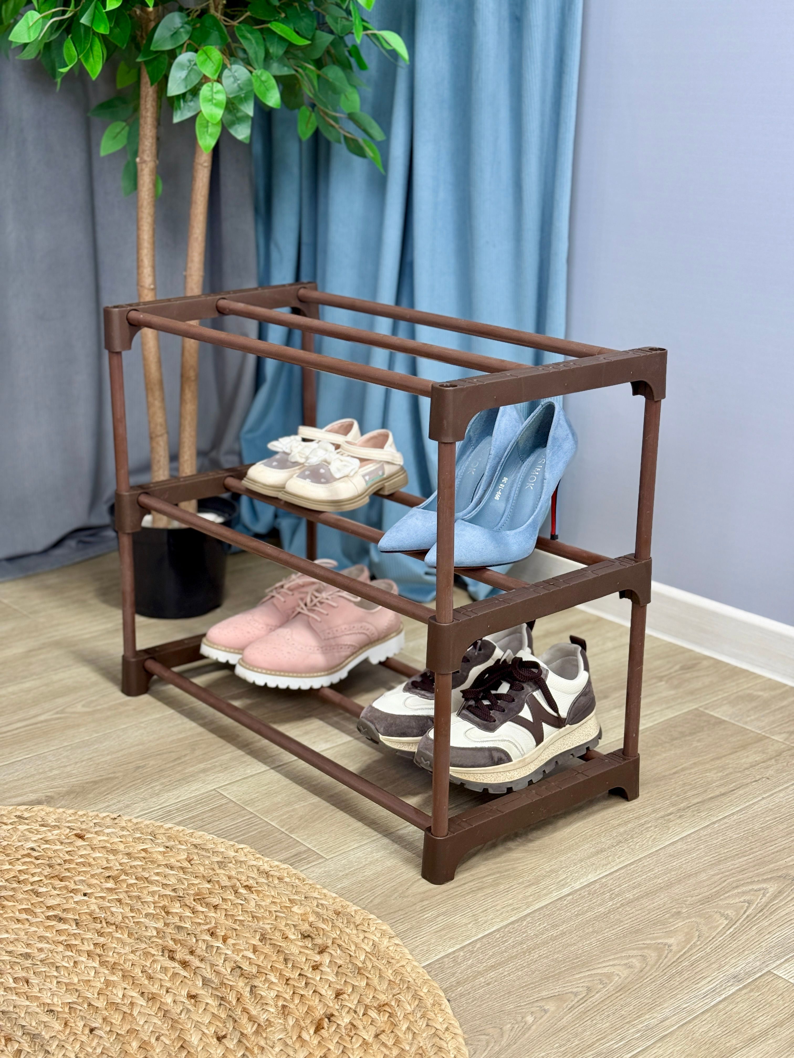 - Ширина одной полки позволяет свободно вместить до 3 пар обуви.