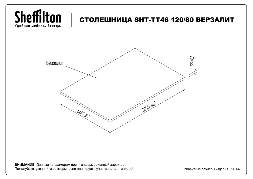 Столешница SHT-TT46 легко переносит температурные колебания от -50 до +90 градусов, что делает её превосходным вариантом как для интерьеров, так и для уличного использования.