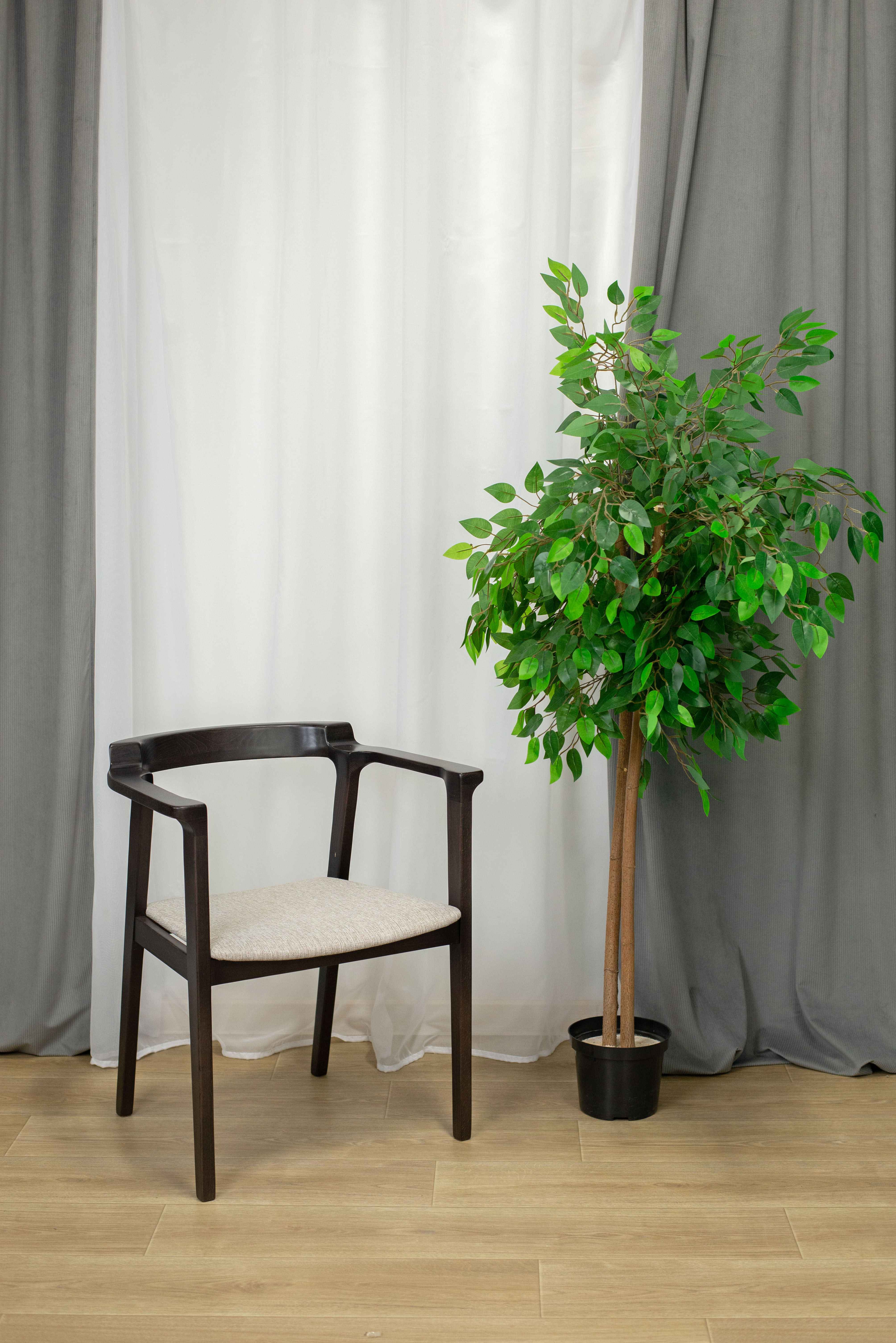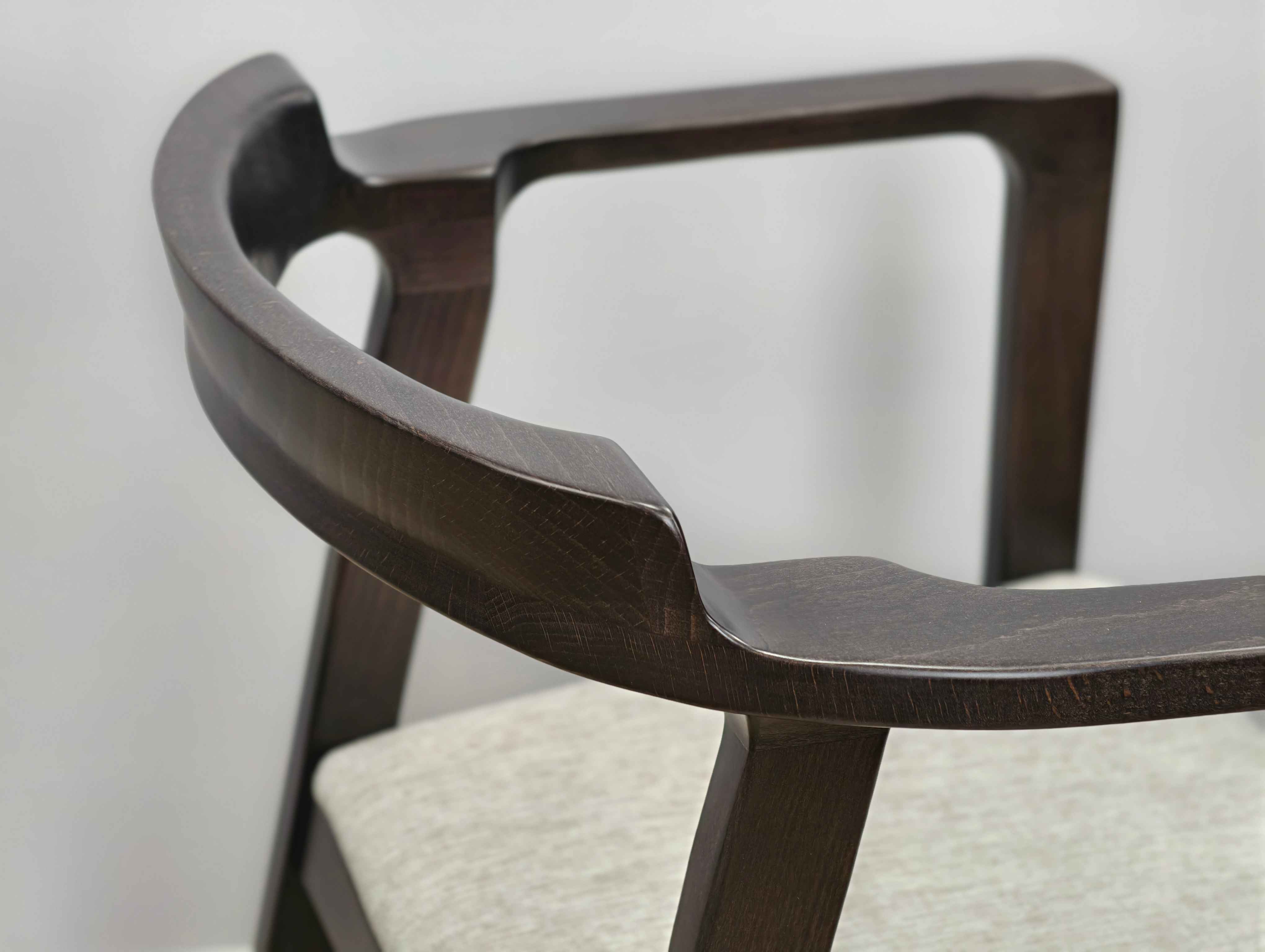 Стул SHT-S203 — воплощение утончённой простоты и благородства форм. Его плавные линии и сбалансированные пропорции создают ощущение лёгкости и элегантности. Мягко изогнутая спинка и плавные изгибы подлокотников образуют цельную архитектурную композицию, в которой функциональность встречается с эстетикой. Тёплый оттенок бука и текстура рогожки придают стулу характер предмета, созданного для пространств, где ценят детали и комфорт.
