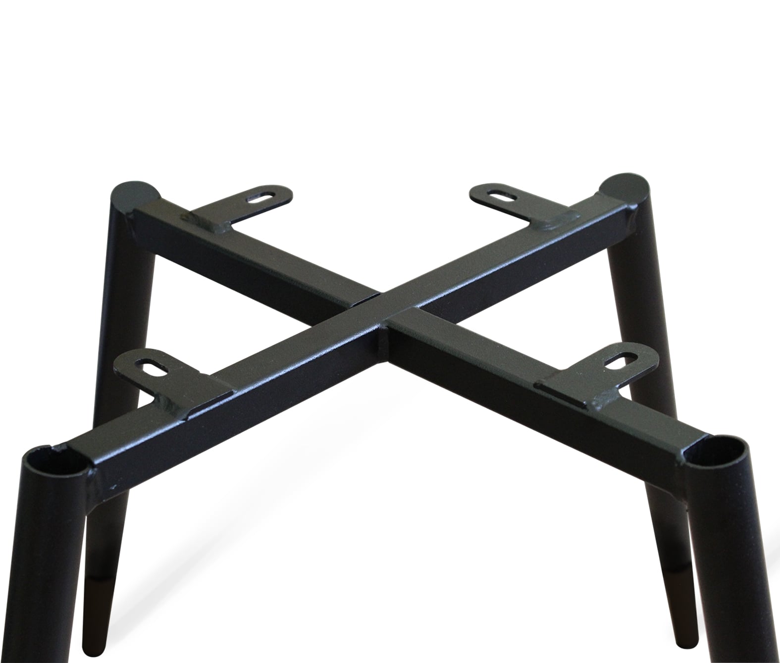 Ножки каркаса выполнены из металлической трубы диаметром 25 мм. Верхняя крестовина каркаса с приваренными фланцами выполнена из квадратной трубы 20х20 мм. Каркас не разборный и окрашен порошковой краской, устойчивой к механическому воздействию. Максимальная статическая нагрузка на каркас – 200 кг.