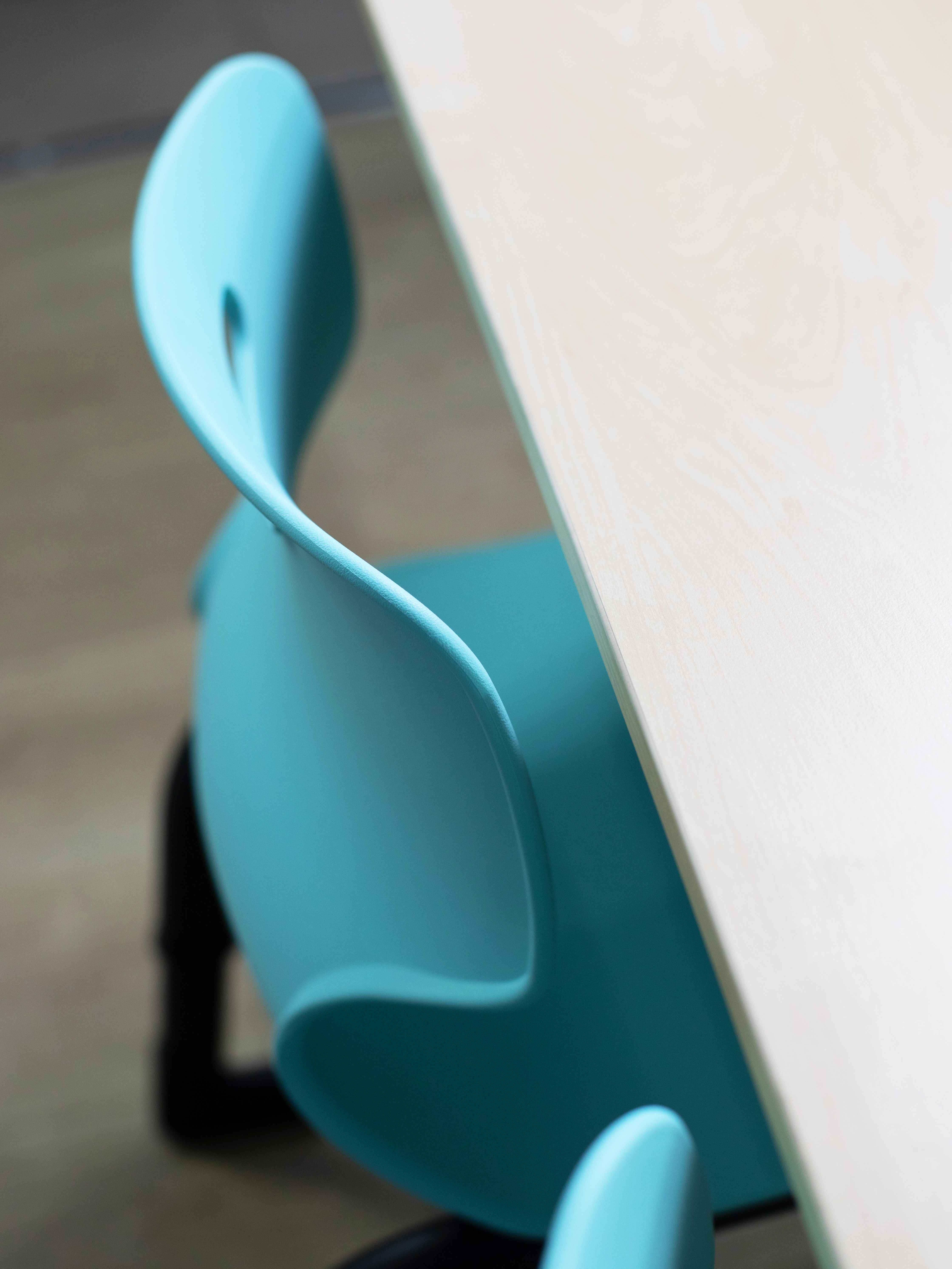 АНАТОМИЧЕСКАЯ ФОРМА СИДЕНЬЯ способствует правильной осанке и снижает усталость во время занятий. На спинке предусмотрено отверстие для руки, что делает перемещение стула простым и удобным.