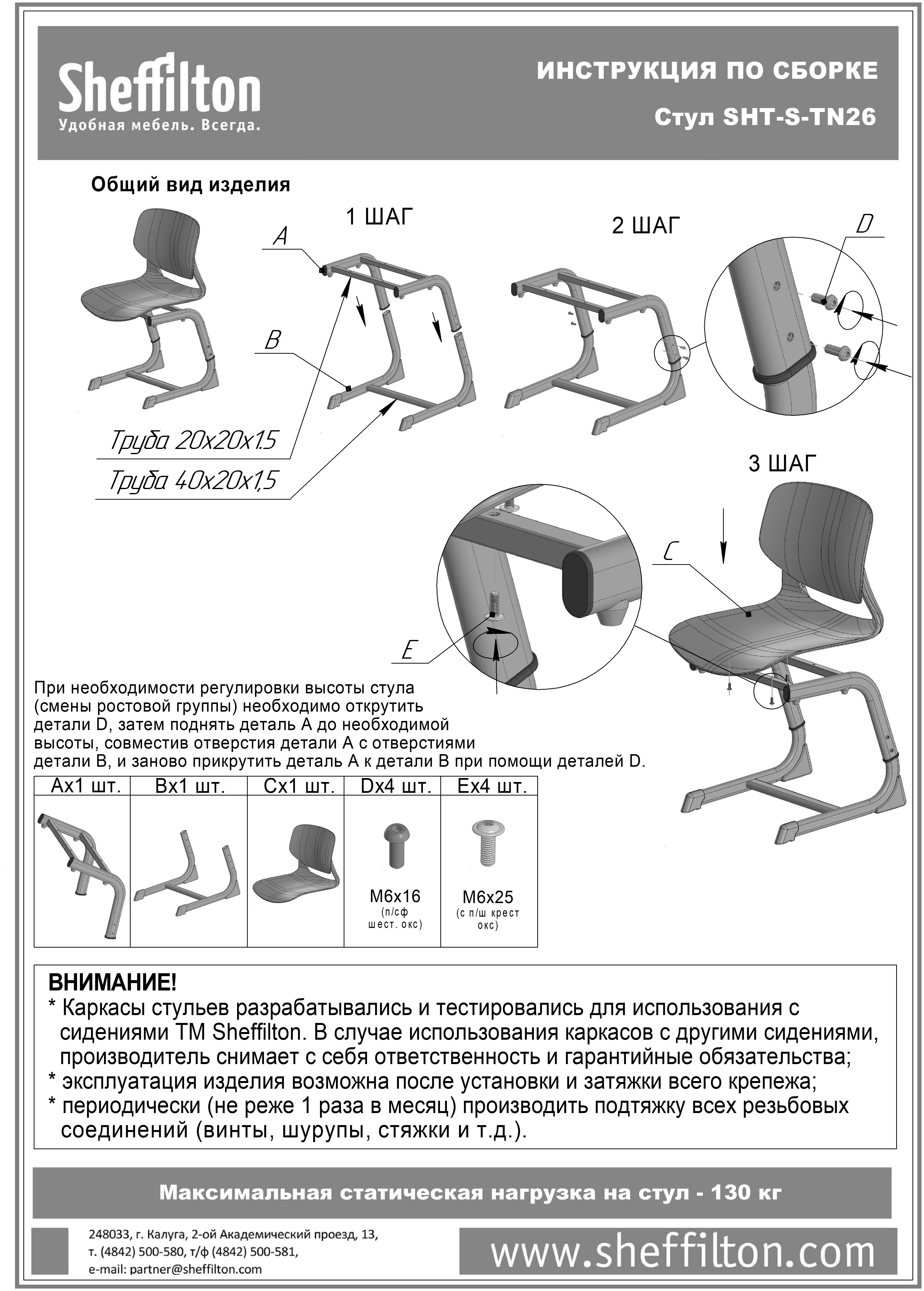 Нагрузка на стул – до 130 кг.