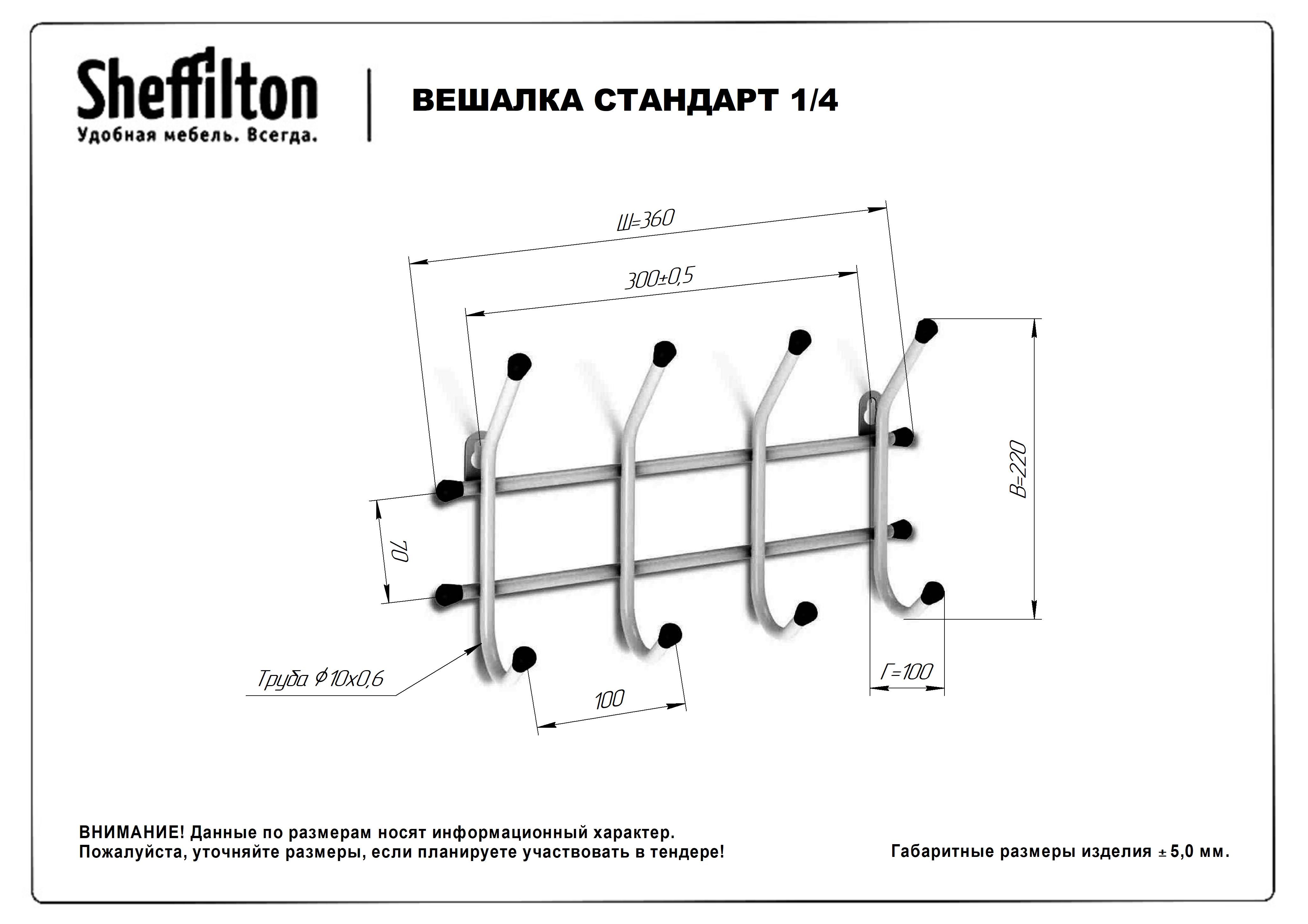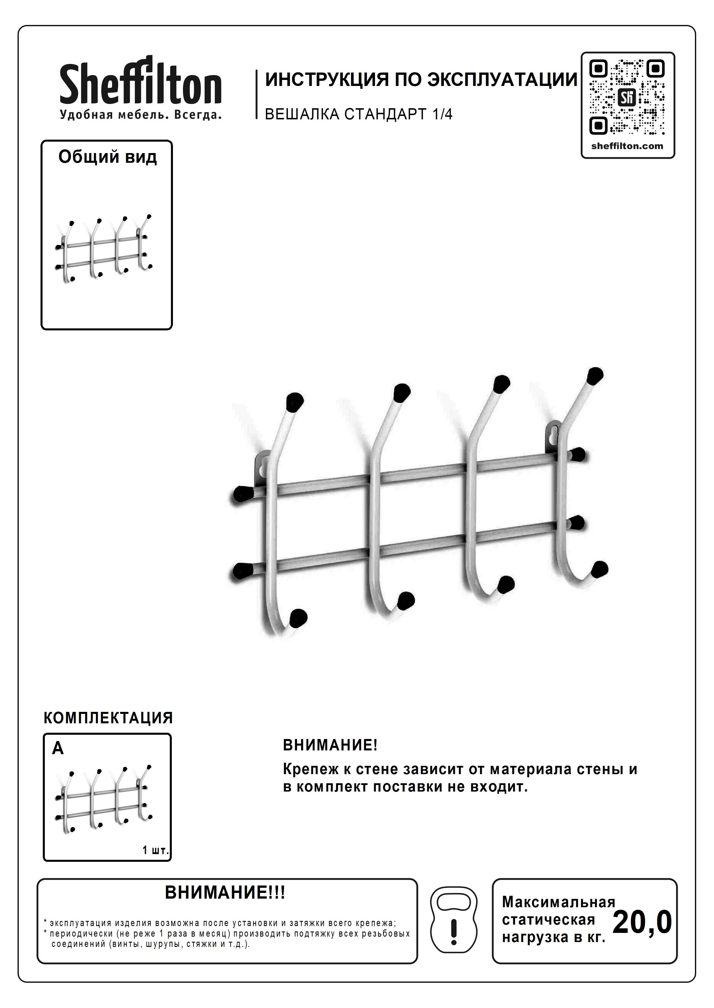 Вешалка Sheffilton Стандарт 1/4 настенная