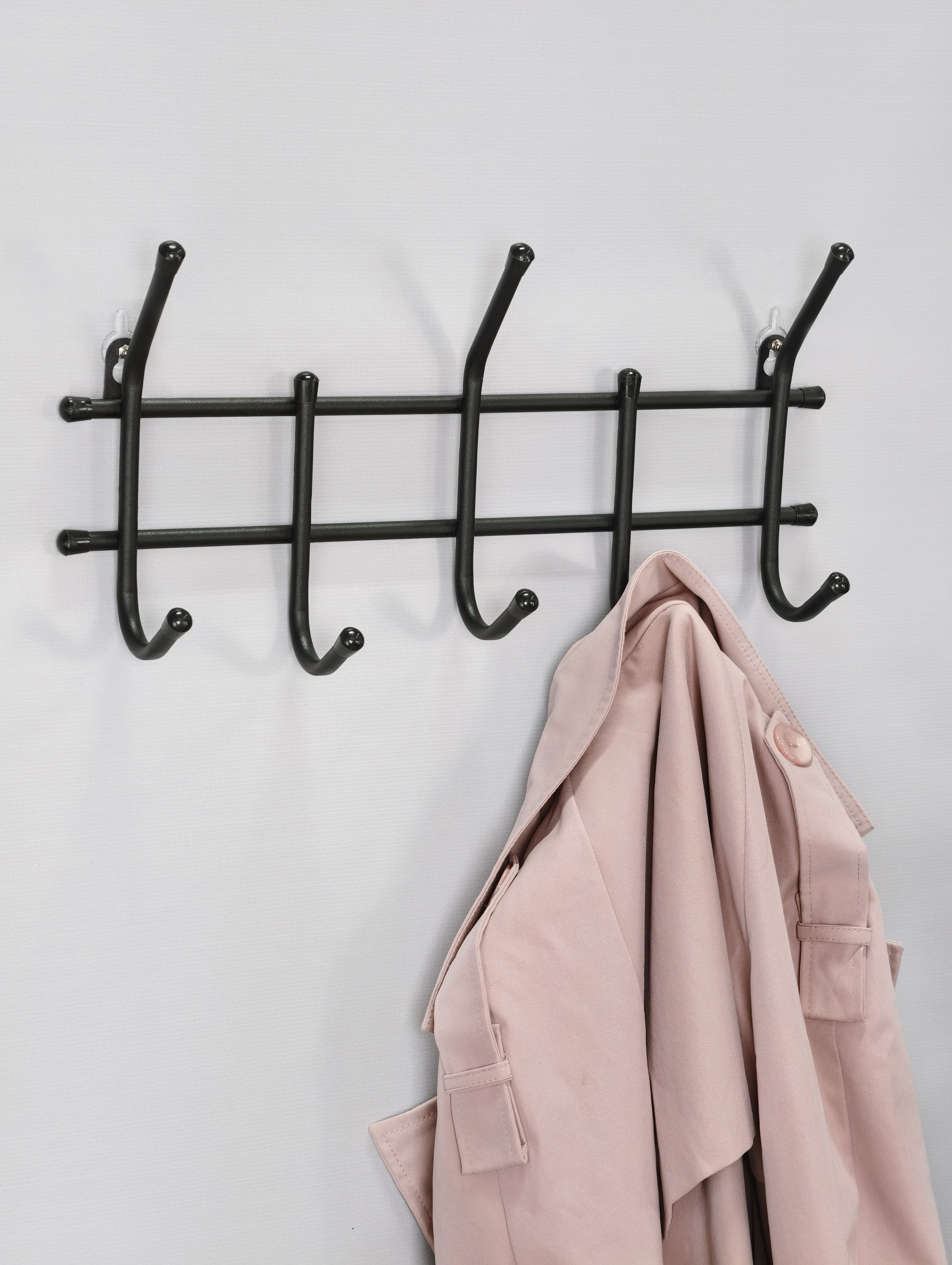 Вешалка выполнена из металлической трубы 10 мм. и пластиковой фурнитуры 12 мм.
