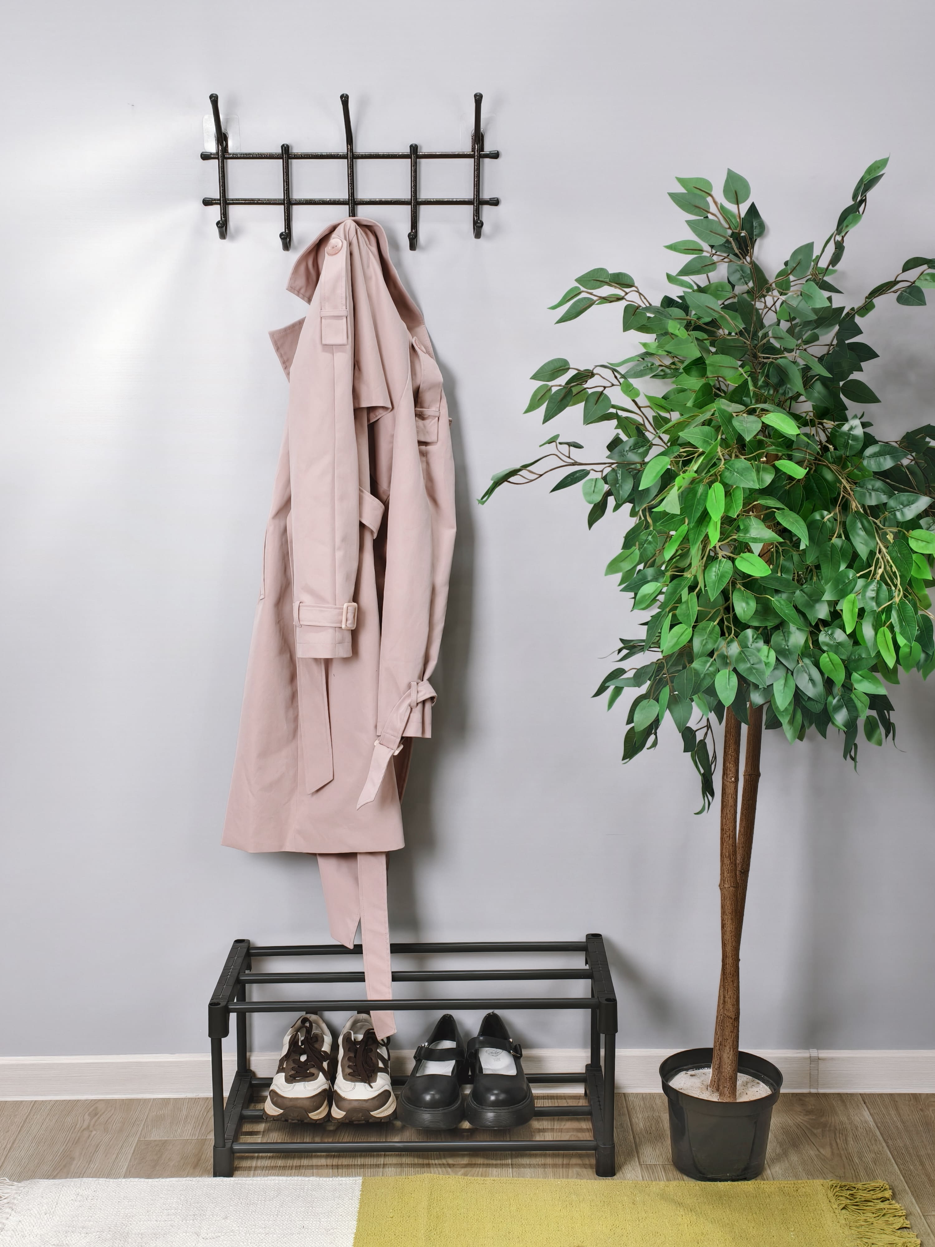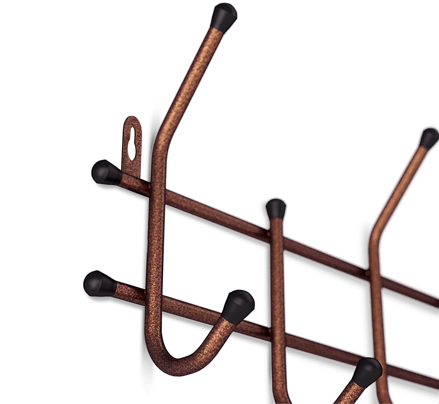 Вешалка выполнена из металлической трубы 10 мм. и пластиковой фурнитуры 12 мм.