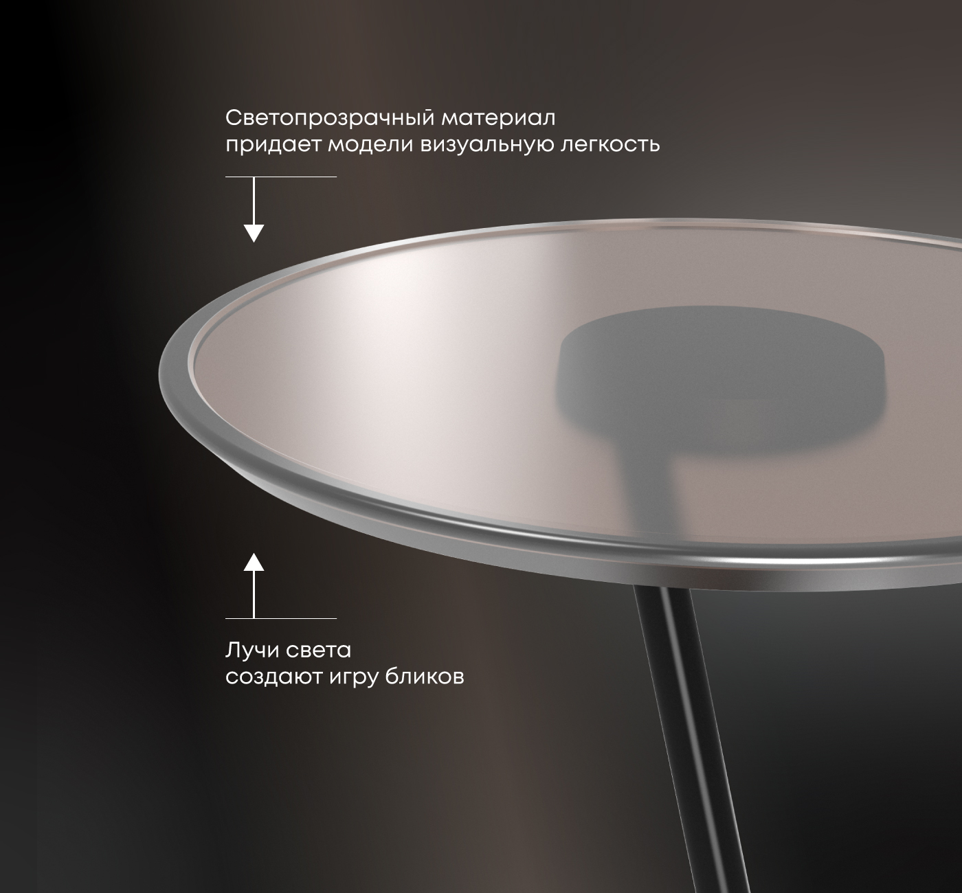 Конусное основание столика, не смотря на визуальную легкость, достаточно тяжелое, что обеспечивает отличную устойчивость.