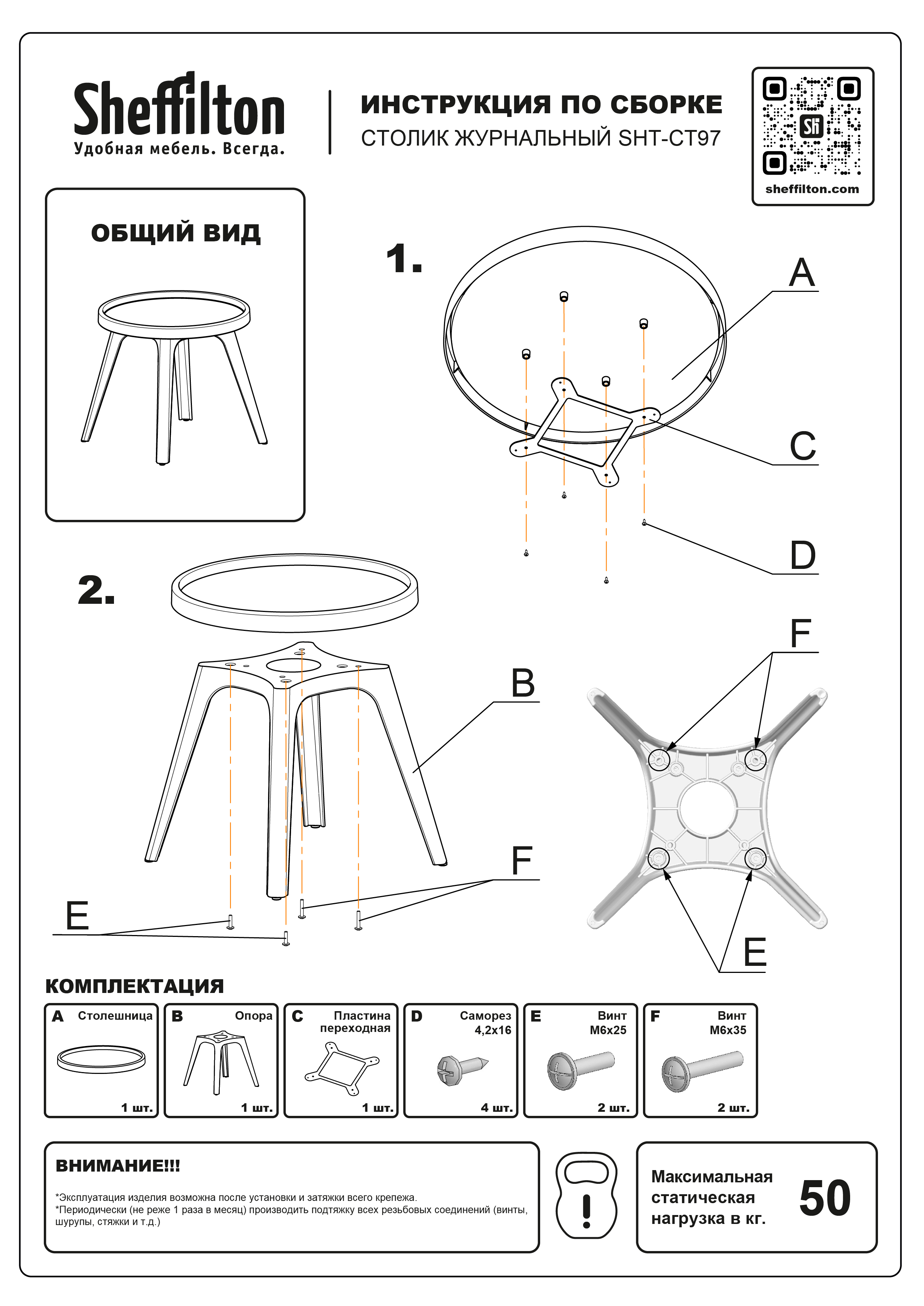 Максимальная нагрузка на столик - 50 кг.
